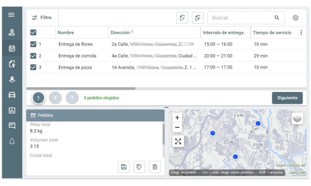 • Seleccione pedidos en el mapa